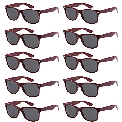 Got Shades offers adult unisex 10 pack sunglasses available in 18 different color options. The glasses are normal sunglasses that retails at $10. Excellent for parties favors, birthdays, school fundraising, charity auctions, corporate giveaway, wedding photo booths, bridal parties, team pride events or even reselling them at retail level. Prices are below wholesale prices. All glasses are FDA approved for impact resistant and light transmission and offer 100% UV protection.Feature