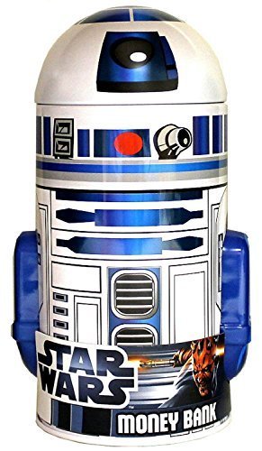 -. Binding : Toy -. Brand : Lucasfilm Ltd. -. Color : multi-colored -. EAN : 0078678348007 -. Feature : Measures approximately 7 in. tall x 3 3/8 in. diameter. / 1 1/4 in. coin slot on top. / Pull-off lid (top of head). -. IsAdultProduct : 0 -. Label : The Tin Box Company -. Manufacturer : The Tin Box Company -. MPN : 348007-3 -. NumberOfItems : 1 -. PackageQuantity : 1 -. PartNumber : 348007-3 -. ProductGroup : Toy -. ProductTypeName : TOYS_AND_GAMES -. Publisher : The Tin Box Company -. Size : 5" -. Studio : The Tin Box Company -. Title : Star Wars R2-D2 Shaped Tin Bank -. UPC : 078678348007