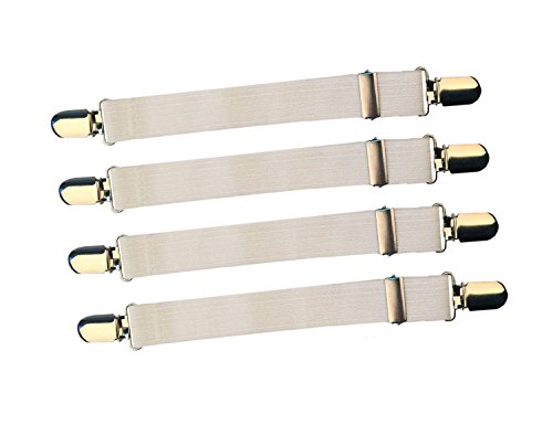 Bed Sheet Fasteners WITH METAL ADJUSTERS Mattress Cover Holders Grippers Suspenders Straps Clips | Perfect Fitted Bed Sheet Fastening System - White, 2-Pack (8 pcs)