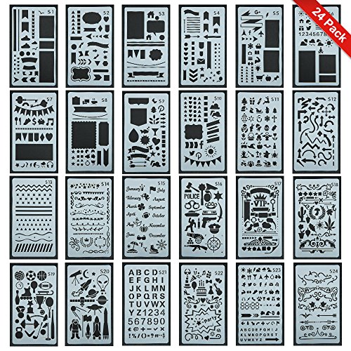 24 Pack New Design Journal Stencil Set-Over 2400 Different Patterns, Letter Template / DIY Craft / Notebook / Diary, Scrapbooking and DIY Projects Drawing Stencils By Star Sea