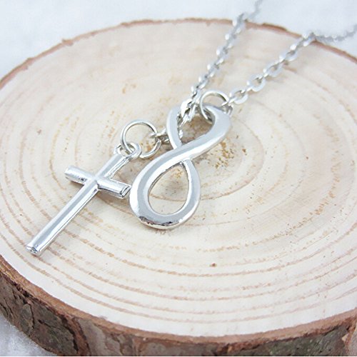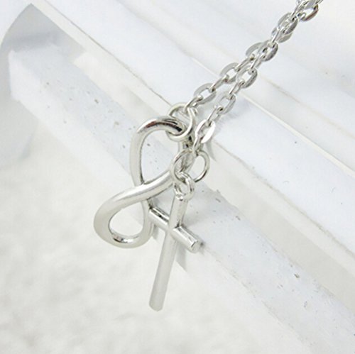 -. Feature : "Silver Cross Infinity Pendant" by My Daily Styles / Material: 925 Sterling Silver / Cross Dimensions: 1.20in x 0.70in / Infinity Dimensions: 0.85in x 0.25in / Chain Length: Adjustable (18.00in - 20.00in)
