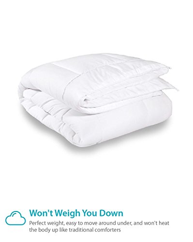 Versatile and won’t weigh you down; Use the comforter as is or use it with a duvet comforter to change the look; Comes in either Queen (86” x 86”) or King size but unlike traditional comforters won’t weigh you down in your sleep