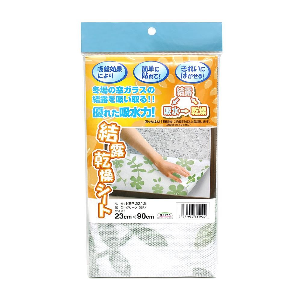 冬場の窓ガラスの結露を吸い取ります。吸盤効果により、簡単に貼れてキレイにはがせます。 製造国:日本 素材・材質:表面:綿不織布裏面:塩化ビニル樹脂 商品サイズ:23×90cm(厚み0.33mm) ※サプライヤー直送品 ご注文後2~3営業日後の出荷となります【商品名】結露乾燥シート 23×90cm GR(グリーン) KBP-2312