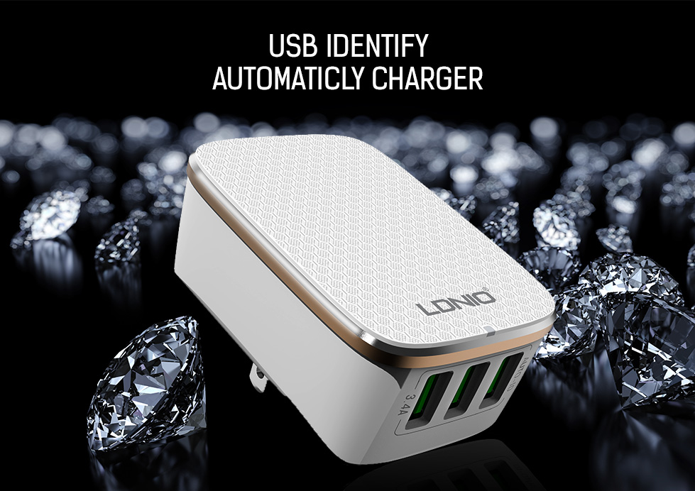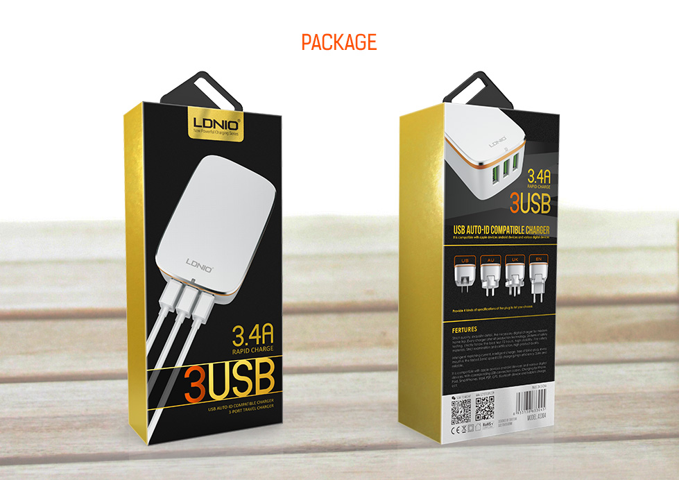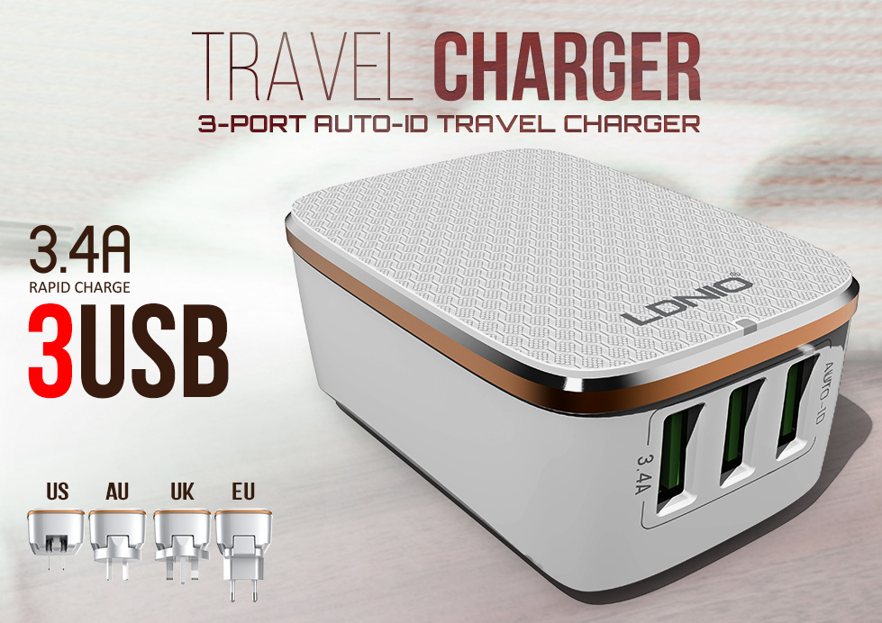 LDNIO 3 Fast USB Ports Travel Charger Travel Adapter /Plug CE RoHS (UK/US Socket)- A3304