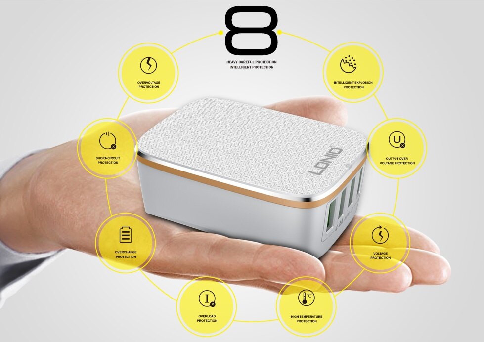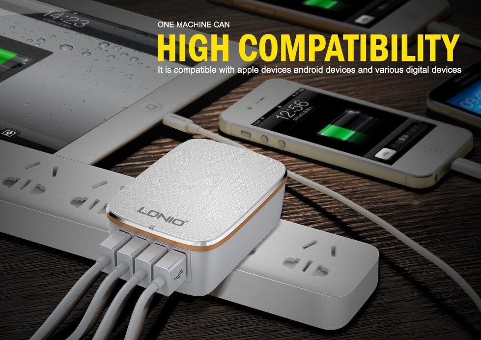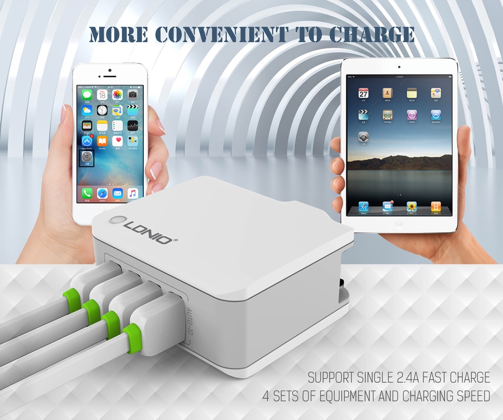 LDNIO 4 Fast USB Ports Travel Charger Travel Adapter /Plug CE RoHS (UK/US Socket)- A4404 Product details of Original LDNIO 4 Fast USB Ports Travel Charger Travel Adapter /Plug (UK Socket)