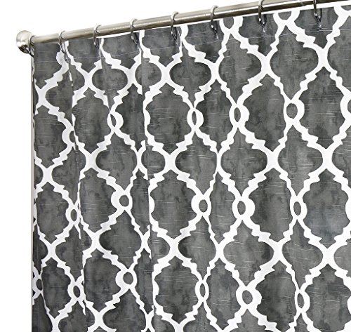 Extra Long Shower Curtain Designer Fabric Gray Print Hand Painted Look Unique 84" Inch