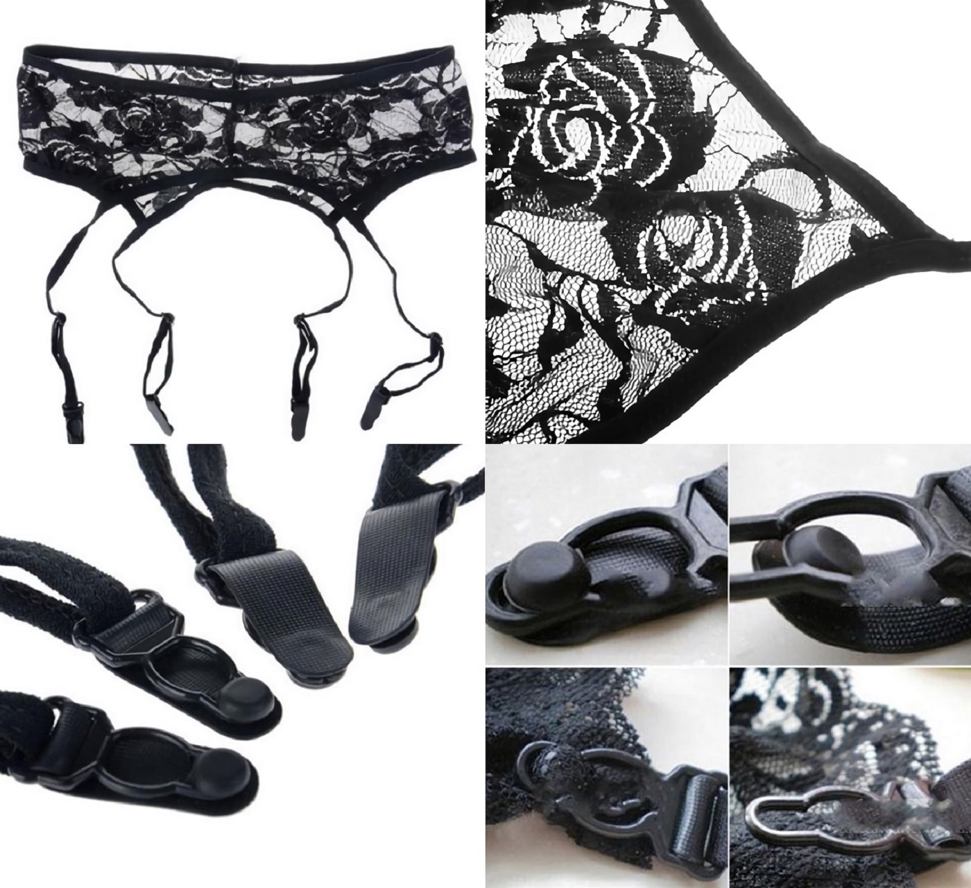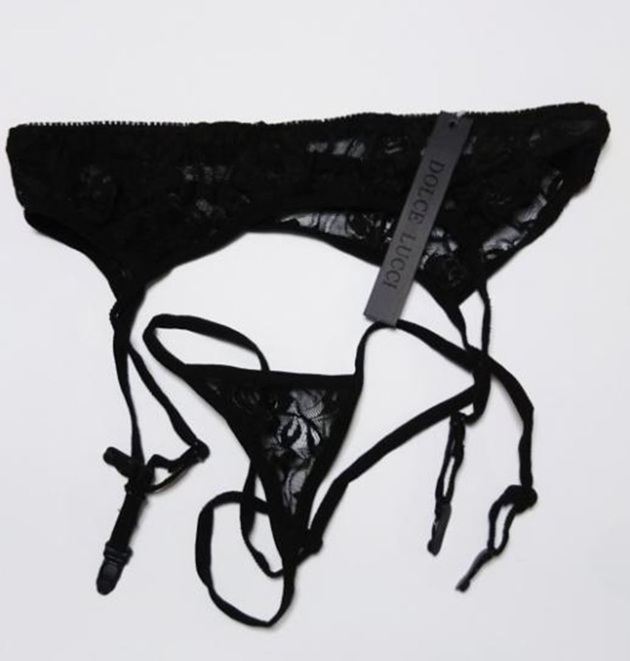 Sexy lingerie garter belt & T back shorts & net tights 3 piece set