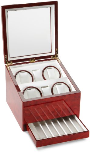 -. Feature : Diplomat quad watch winder / Wind 4 watches while storing 10 additional watches / High gloss burl wood finish / 110V adapter included / 1 year manufacturer's warranty