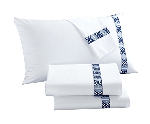 - 100Percent Cotton 300 thread count sheets set with tribal Aztec inspired embroidered hem sheet set