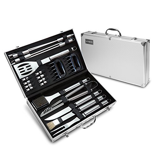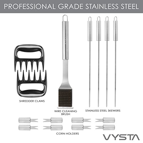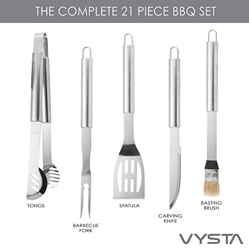 21 Piece BBQ Tools Set - Barbecue Accessories With Carrying Case - Pro Grade Stainless Steel Grill Utensils Plus Bonus Pulled Meat Shredder Claws - by Vysta