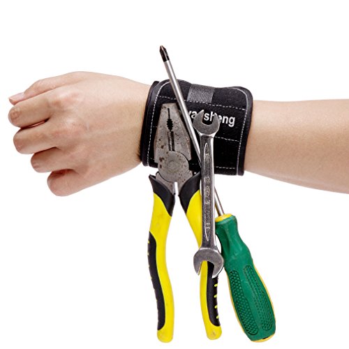 - MORE FUNCTIONAL AND EFFICIENT MAGNETIC WRISTBAND TOOL delivers the strength of powerful magnets that you wear! Perfect for construction, gendering, electrical repairs, carpentry, mechanics, sewing and much more!! Wrist bands for drill bit, nails, screws, fasteners, wrenches, nuts, scissors, screwdrivers and hammers are easily caught by our magnetic bracelet, being always on hand when you need them!