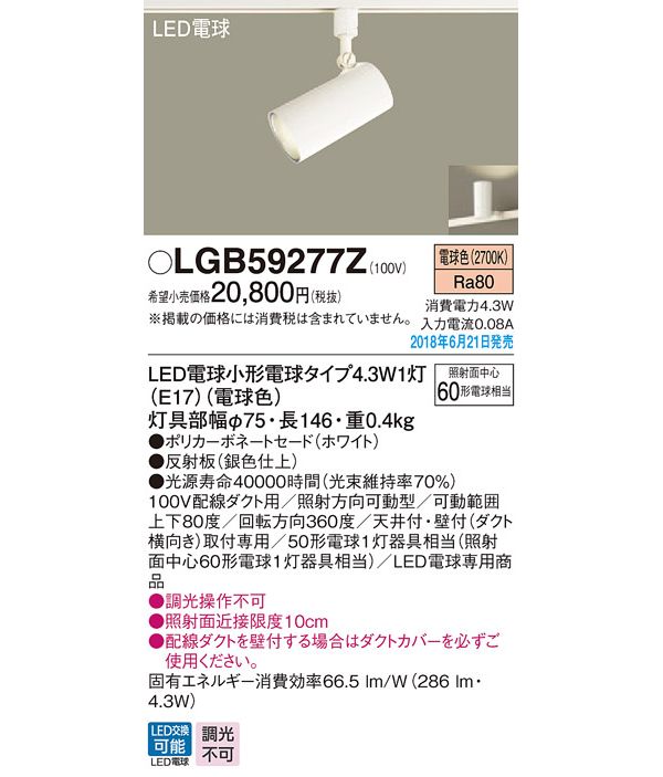 ●光源:LED電球小形電球タイプ4.3W1灯(E17)(電球色)、色温度:2700K、光源寿命40000時間(光束維持率70%)