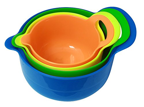 Gourmet Home Products 4 Piece Polypropylene Batter Bowl Set with Non Skid Bottom, Blue