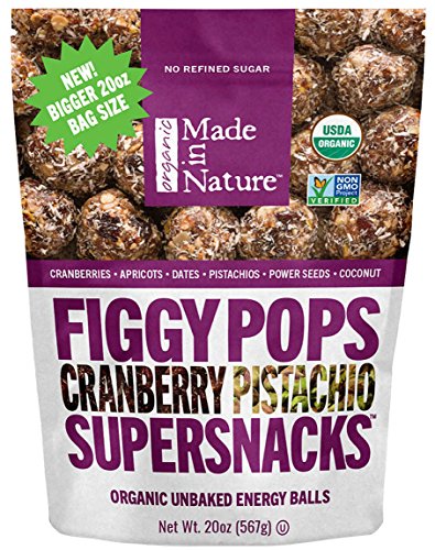 - An organic supersnack bursting with flavor, Cranberry Pistachio Figgy Pops are a blend of cranberries, apricots, dates, pistachios and seeds — covered in coconut for just the right crunch you crave. They’re the snack that’s so pure and so good it could only come from nature.
