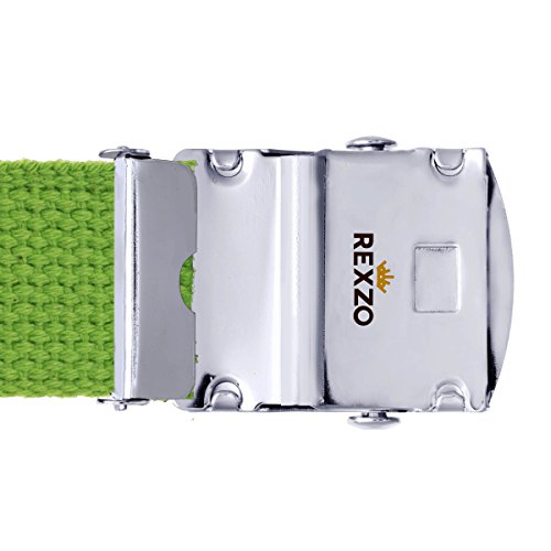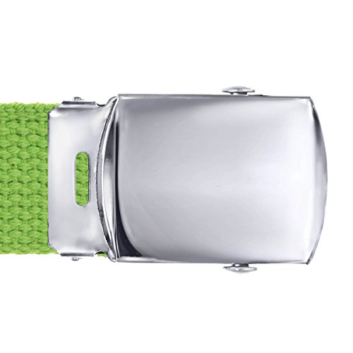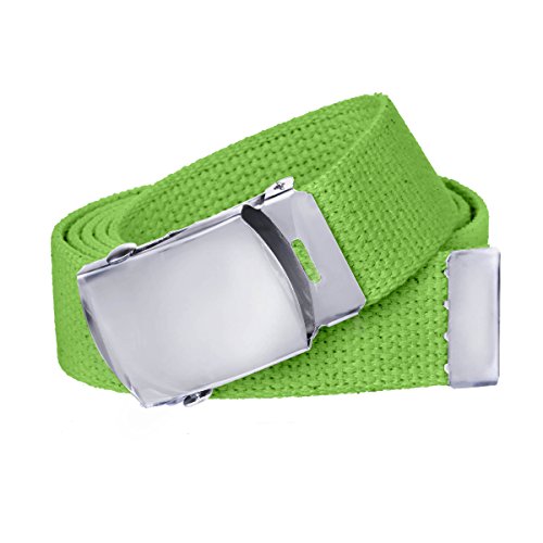 Take a rugged approach to accessorizing with this military style canvas belt. With a 100% cotton canvas body and a silver buckle and tip, it's a high quality, comfortable, and durable men's accessory with a natural look and feel. Simple to snap on and off and easy to adjust at any time, it's also incredibly convenient to wear. Suitable for a waist size of up to 44 inches, it can be further adjusted for smaller waists by removing the buckle and trimming the belt to your desired length.Feature