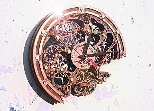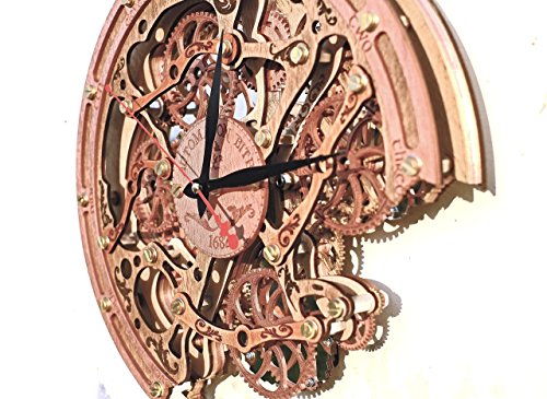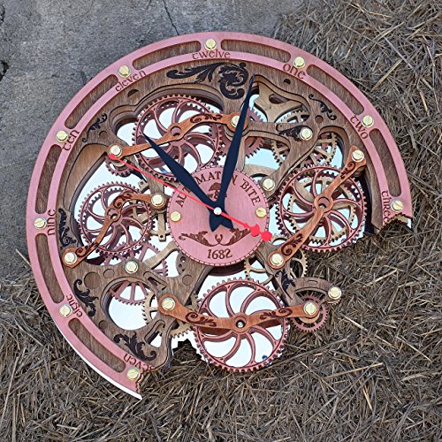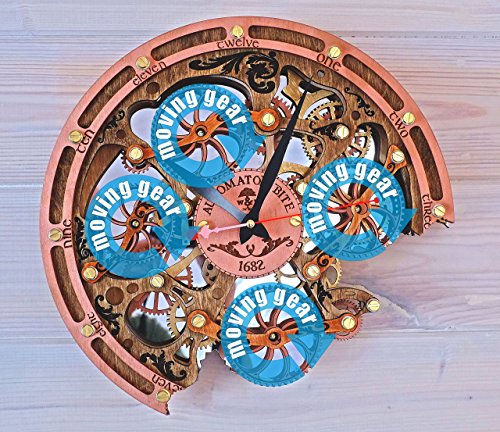 -. Title : Automaton Bite 1682 HANDCRAFTED moving gears wall clock by WOODANDROOT transparent steampunk wall clock, unique, personalized gifts, anniversary gift, large wall clock, home decor