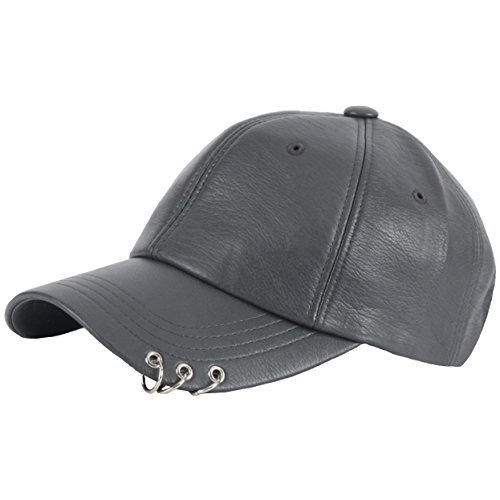 -. Title : RaOn B197 Faux Leather Silver Three Ring Piercing Rock Ball Cap Baseball Hat Truckers