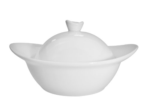 CAC China RCN-OB5 Clinton Rolled Edge 5-5/8 by 4-3/4 by 3-Inch Porcelain Oval Bowl with Lid, 4.5-Ounce, Super White, Box of 24