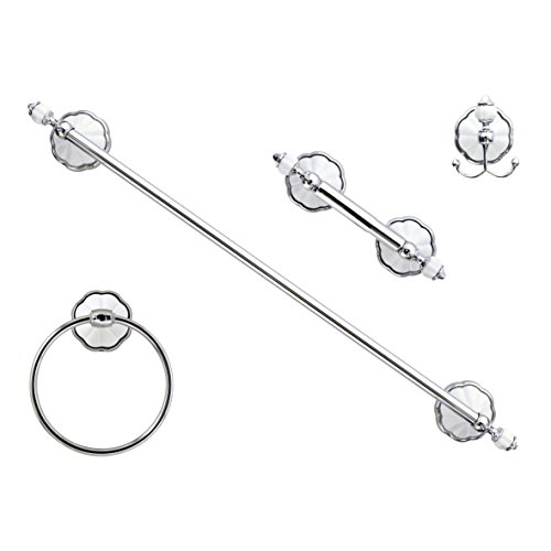 MODONA Four Piece Bathroom Accessories Set, Includes 24” Towel Bar, Robe Hook, Towel Ring, and Toilet Paper Holder – White Porcelain & Chrome - Flora Series - 5 Year Warrantee