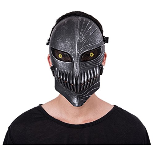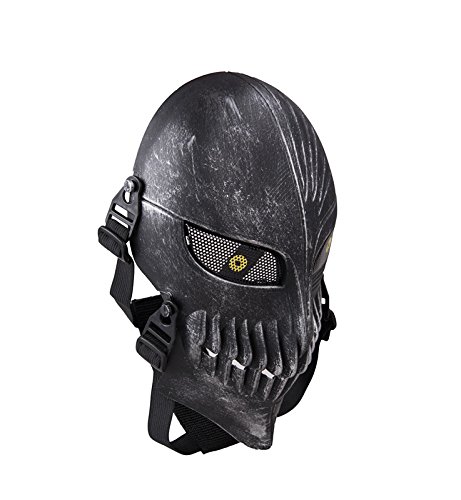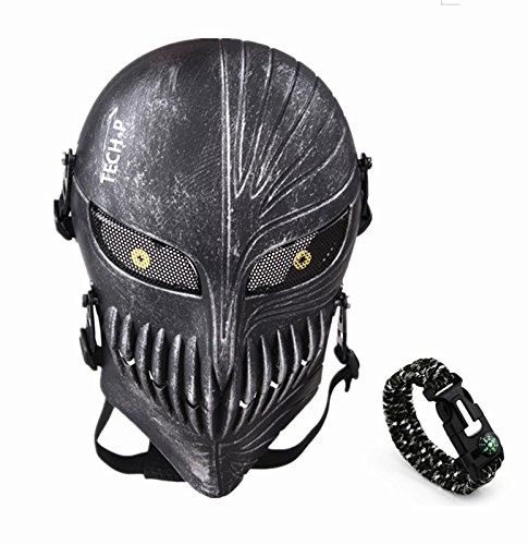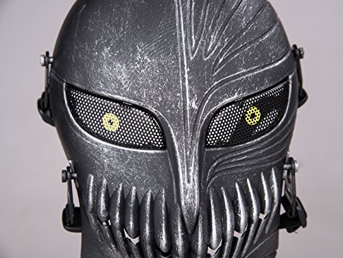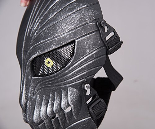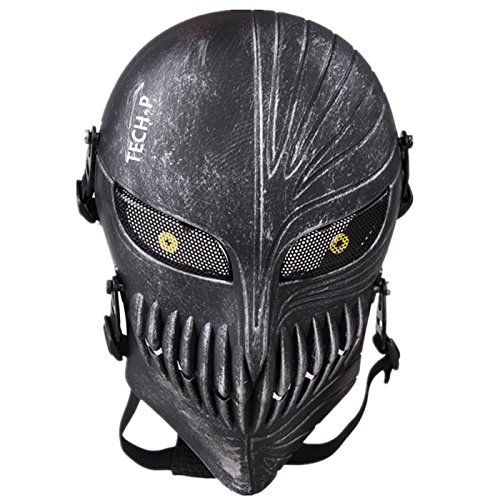 Tech-p Death Skull Face Mask - Protective Mask Gear for Use As Tactical Mask & Airsoft and Outdoor Cs War Game Mask - Scary Ghost Mask for Halloween - Silver and Black Cosplay Mask