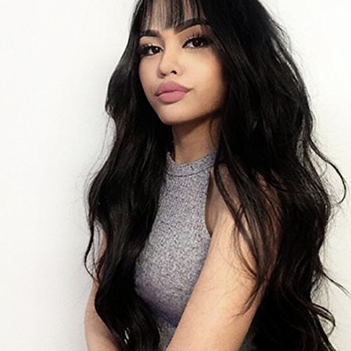 DIFEI 26'' Long Wavy Curly Wig with Bangs for Black Women Heat Resistant Synthetic Wigs (heise)
