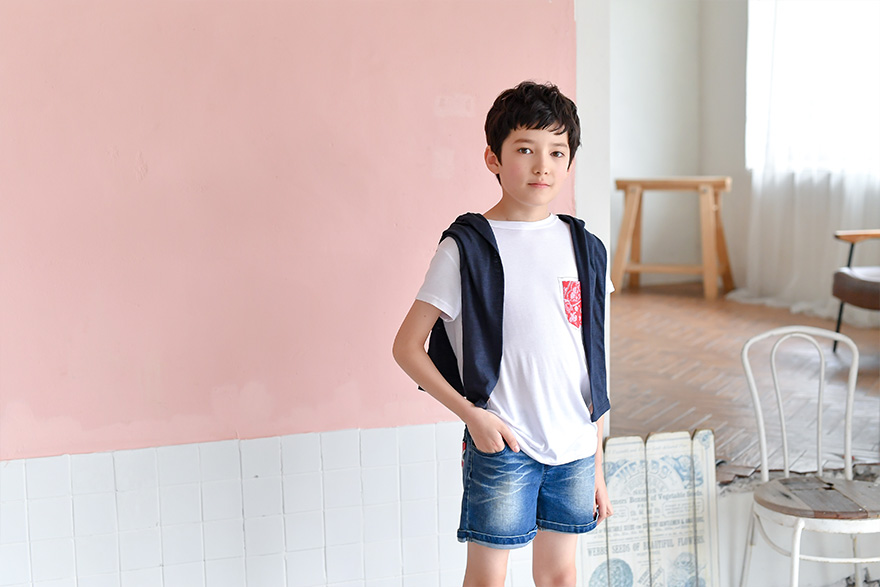 피팅한 남아의 모델은 146cm에 32kg으로 다소 마른체격이며,