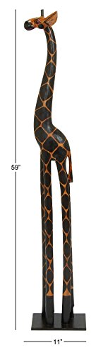 This modern sculpture will add an elegant touch to your decor. The tall giraffe figurine features elegant tall stature and a solid base. The earth tone colors used are calming. Would this look great in your home? Order yours today! Measurements: 59"H x 11''W x 7"D.Feature