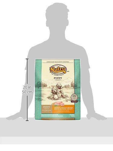 NUTRO WHOLESOME ESSENTIALS Puppy Farm-Raised Chicken, Brown Rice & Sweet Potato Recipe Dog Food always starts with great-tasting, farm-raised chicken as the first ingredient and contains a unique blend of whole grains, vegetables and fruit. This natural dog food is made with Omega 3 fatty acids like DHA for healthy growth and development for your puppy, plus vitamins, minerals and other nutrients. These recipes are also crafted with Omega 3 & 6 fatty acids, to promote healthy skin and a soft, shiny coat and calcium to build strong bones and joints. NUTRO Food for Dogs follows the THE NUTRO FEED CLEAN philosophy, is always made with Non-GMO Ingredients and is made with no artificial flavors, colors or preservatives. *Trace amounts of genetically modified material may be present due to potential cross contact during manufacturing.Feature