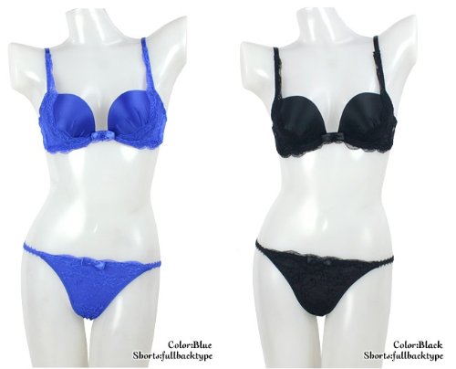 -. Title : グラマラス美乳ブラ&レーシーショーツセット ブルー ブラック 2色組E70(M)