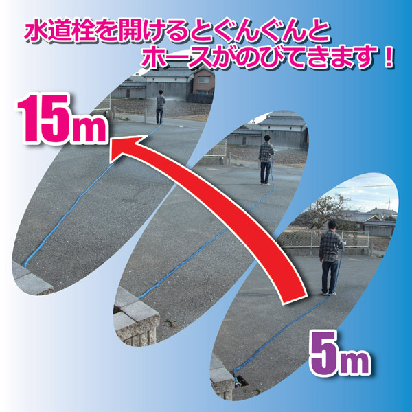 ●不思議!水を出すとホースの長さがどんどん伸びていく!