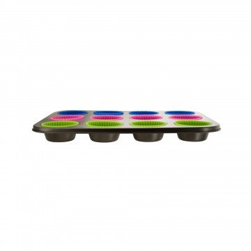 -. Feature : Muffin or Cupcake Kit - Metal Pan and Removable Silicone Cup are Perfect Combination / Metal Tin is Sturdy and provides Stability not found in Soft Silicone Pans - Avoid Spills / 12 Removable Liner Cups are Easy to Clean - Dishwasher Safe - Silicone Cups are Reusable for Baking Cupcakes or Muffins / Beautiful kitchen accessory in lime green, bright pink and royal blue. Put the fun back into baking / Buy one as a gift for birthday, new home or wedding shower! And, buy one for yourself! Click Quantity "2" before clicking "Add to Cart"