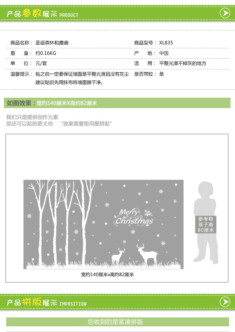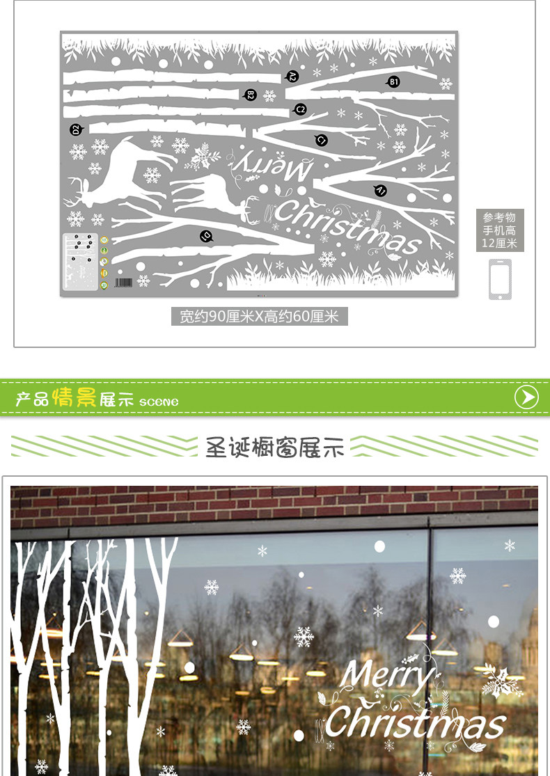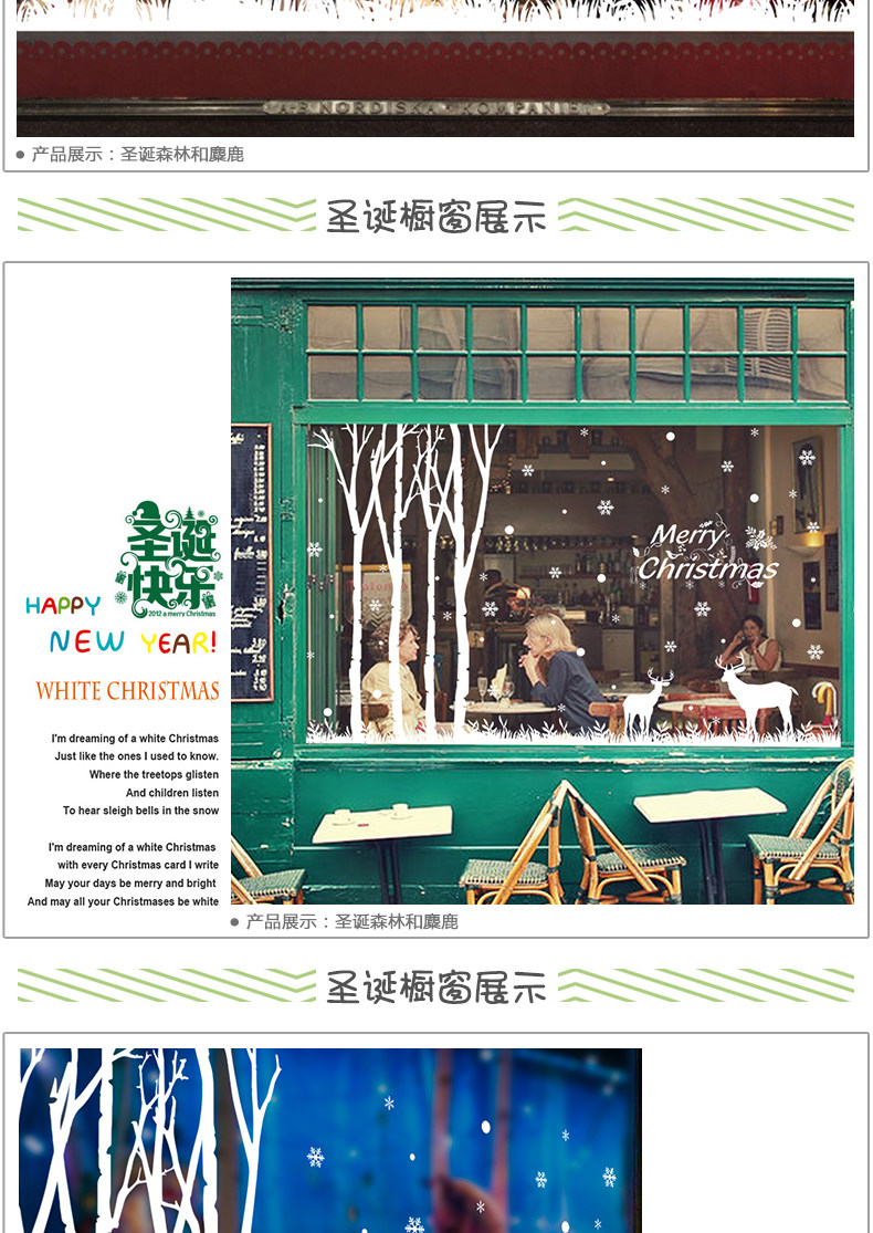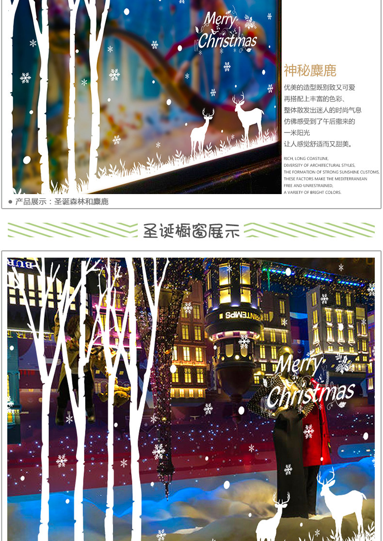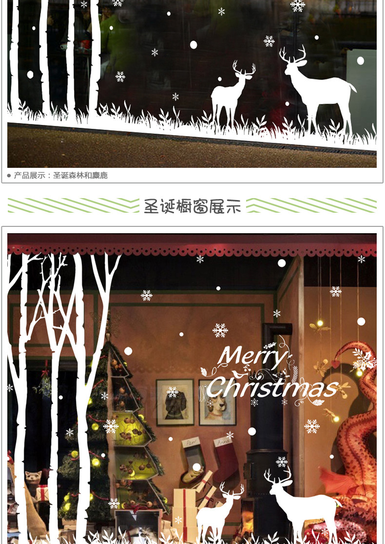 圣诞节森林麋鹿店面橱窗玻璃门贴窗户贴纸场景布置墙贴雪花装饰品