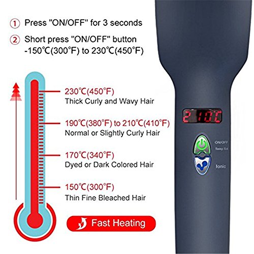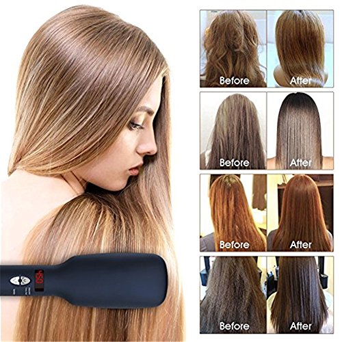 - ✅ADJUSTABLE TEMPERATURE SETTING - Straightener Brush Comb can be adjusted temperature from 150℃/300℉ to 230℃/450℉.Simply turn it on, hair straightening brush temperature will be displayed on the LED screen.allow you to match your specific hair type: thin, fine, bleached, wavy or curled.