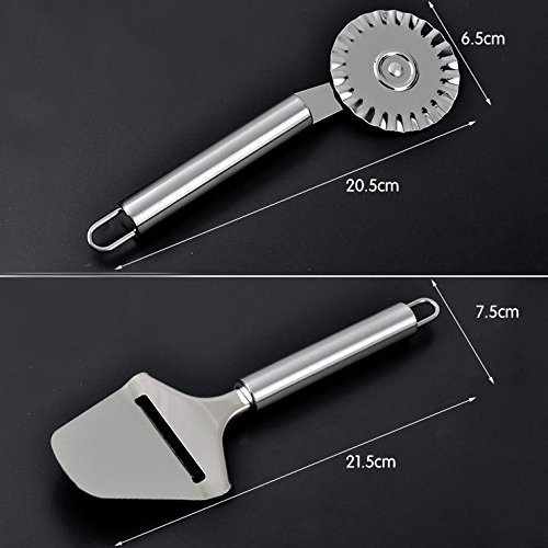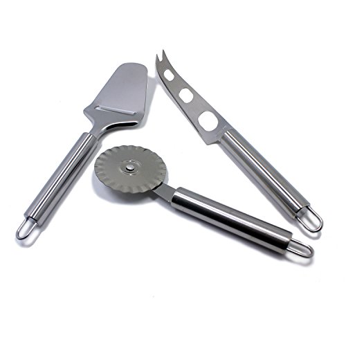 T&B 3pcs Multi-Use Kitchen Gadget and Tool sets, Stainless Steel Premium Kitchen Essentials Sets- Cheese Slicer, Cheese Knife ,Pizza Cutter Wheel Kit