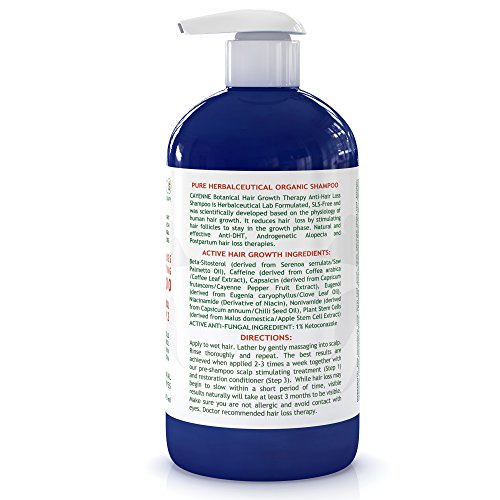 Apply shampoo to wet hair. Lather by gently massaging into scalp. Rinse thoroughly and repeat. The best results are achieved when applied 2-3 times a week together with our hair loss treatments: hair loss scalp treatment (Step 1) and Lavender restoration conditioner (Step 3). While hair loss may begin to slow within a short period of time, visible results naturally will take at least 3 months to be seen. Make sure you are not allergic and avoid contact with eyes. Doctor recommended hair loss therapy. Cayenne Anti-Hair Loss Shampoo is Herbalceutical Lab Formulated, SLS-Free and was scientifically developed based on the physiology of human hair growth. It reduces hair loss by stimulating hair follicles to stay in the growth phase. Effective and natural hair products for Anti-DHT, Androgenetic Alopecia and Postpartum hair loss therapies. Best Womens Product 2017.