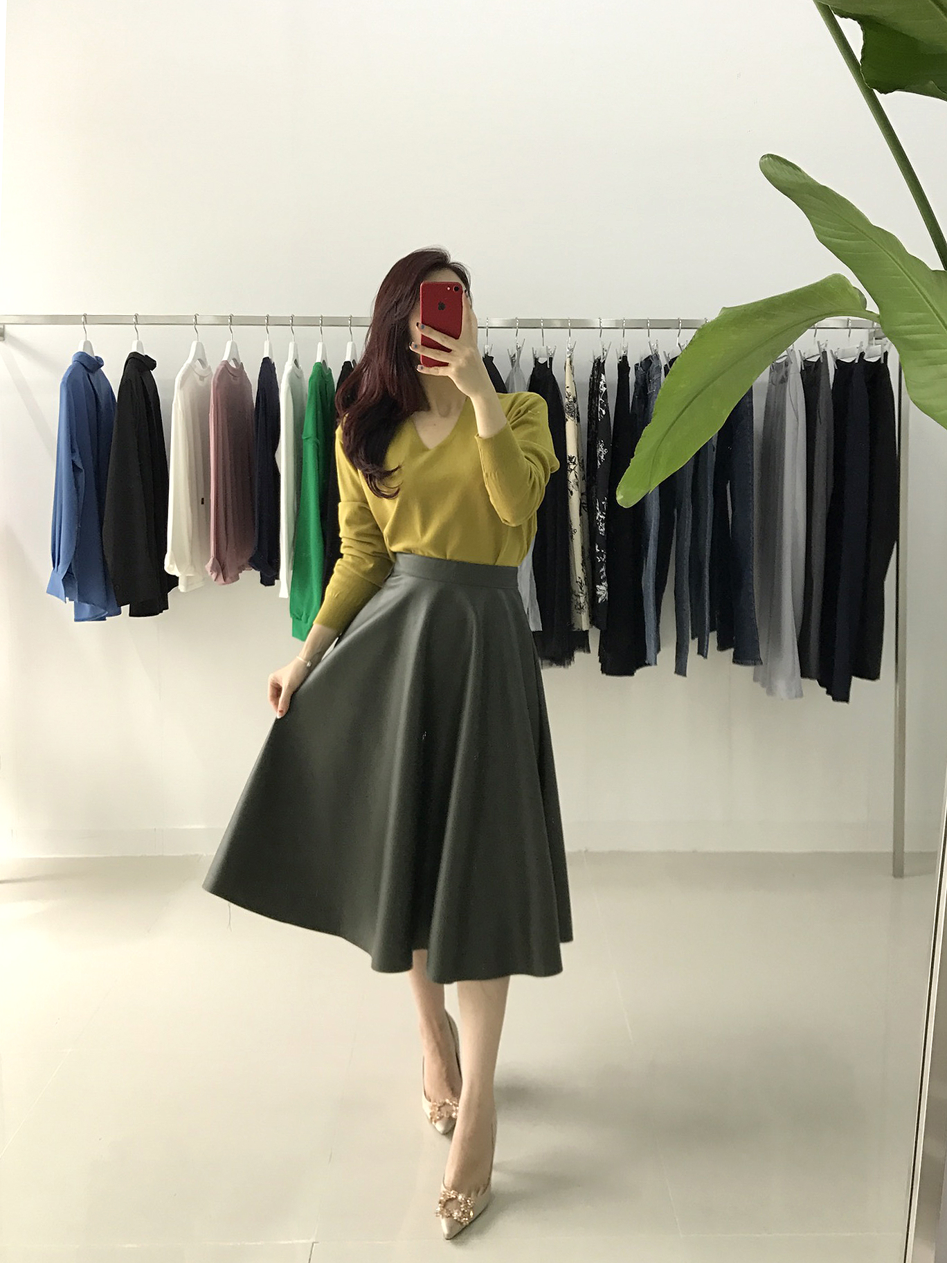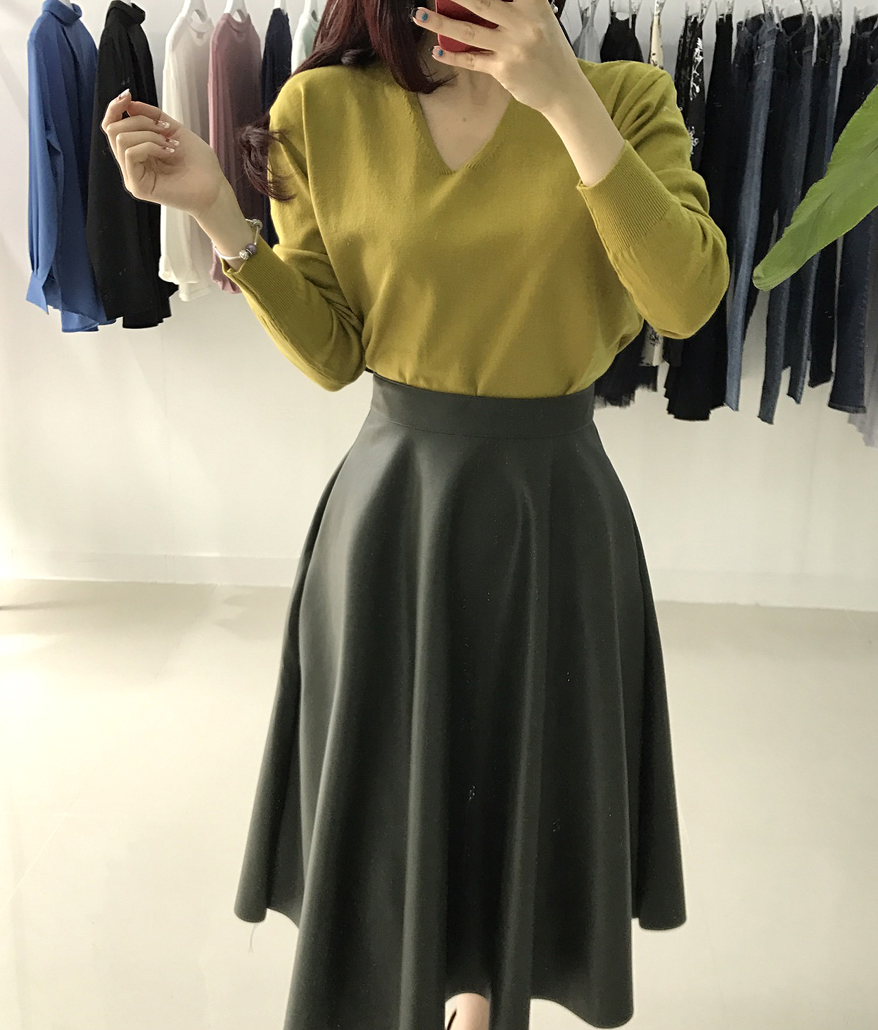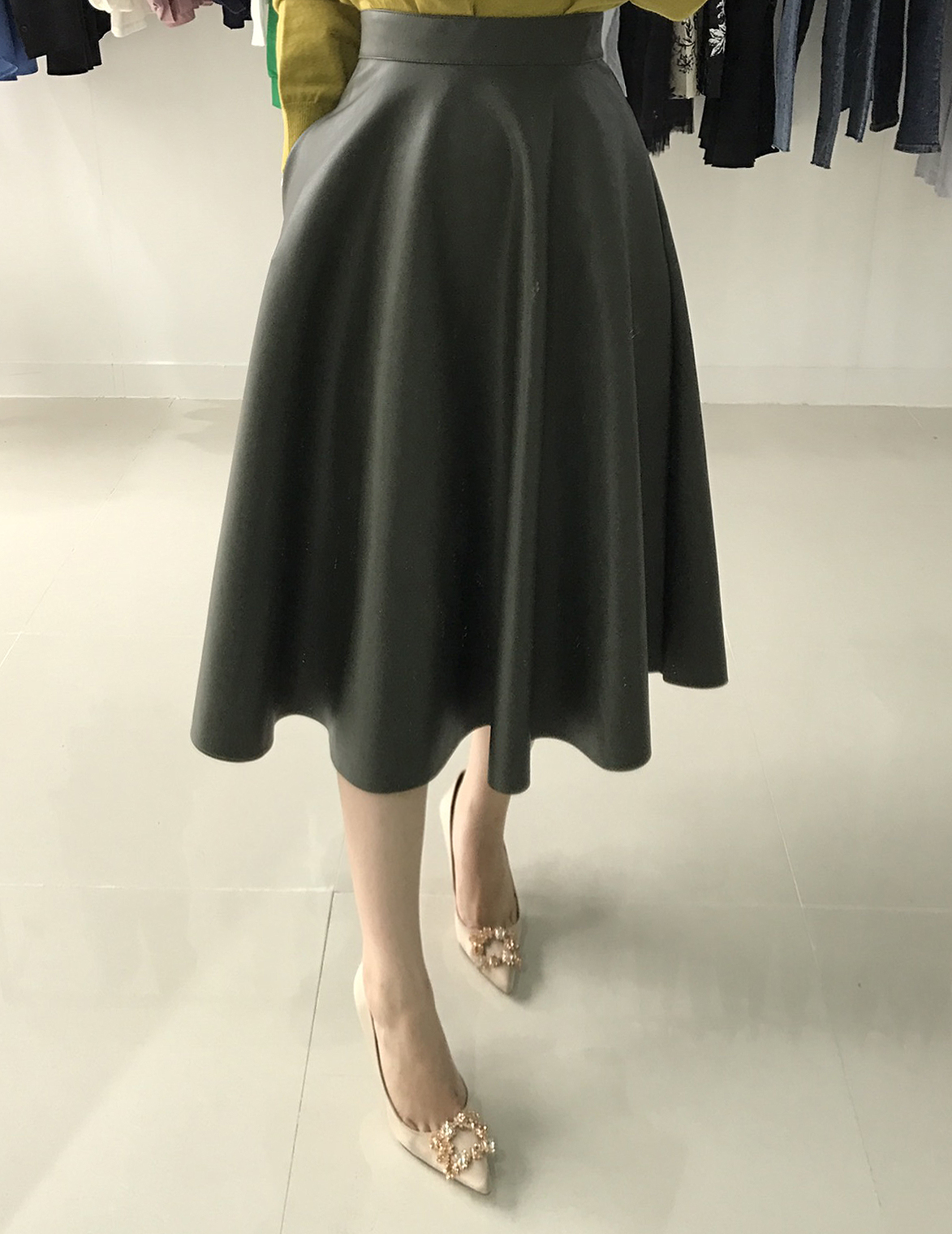 Love a line Midi Long Autumn skirt Neat coordination Luxurious and stylish office look