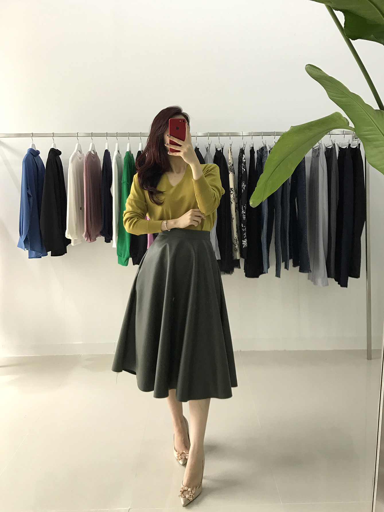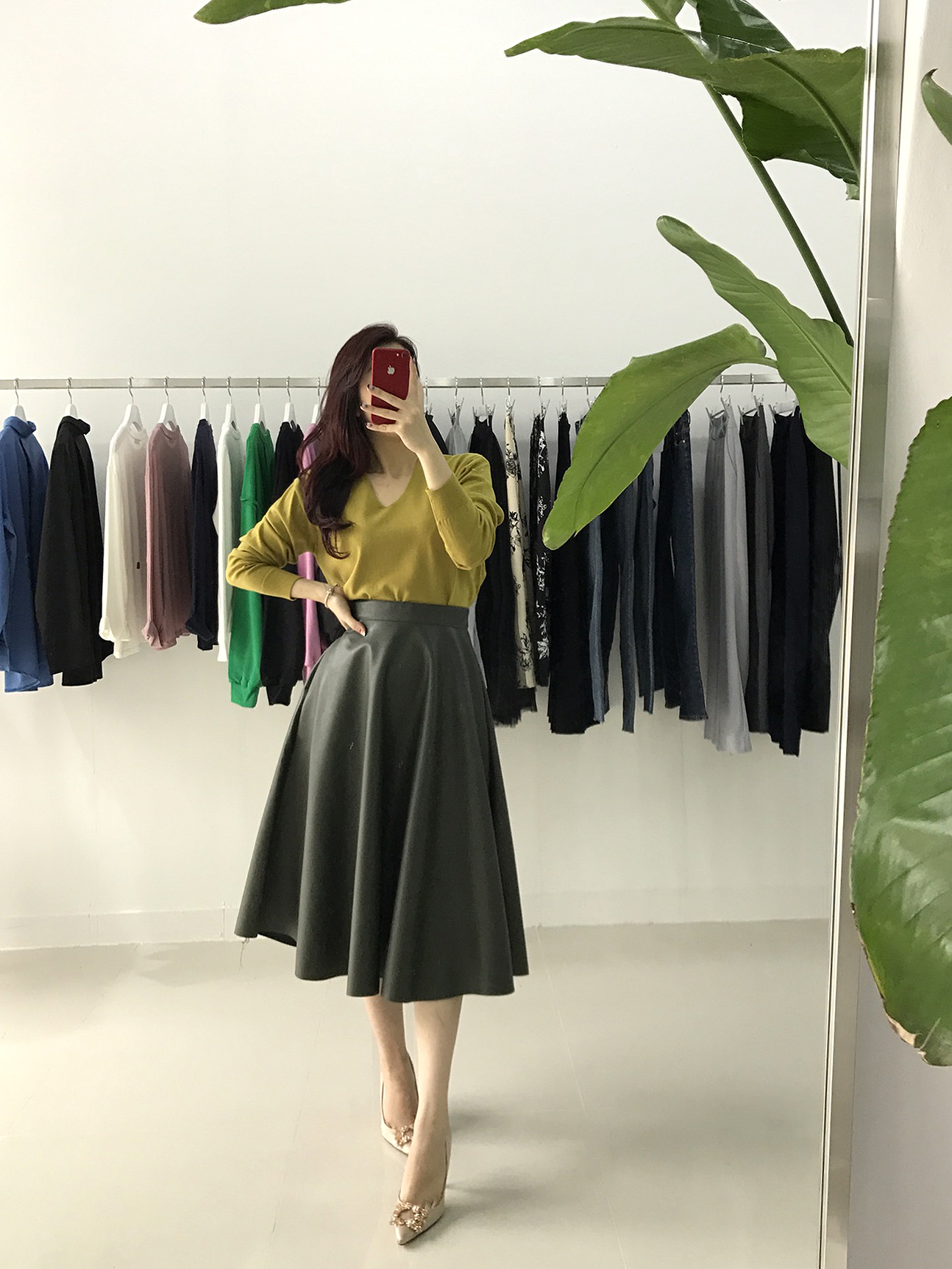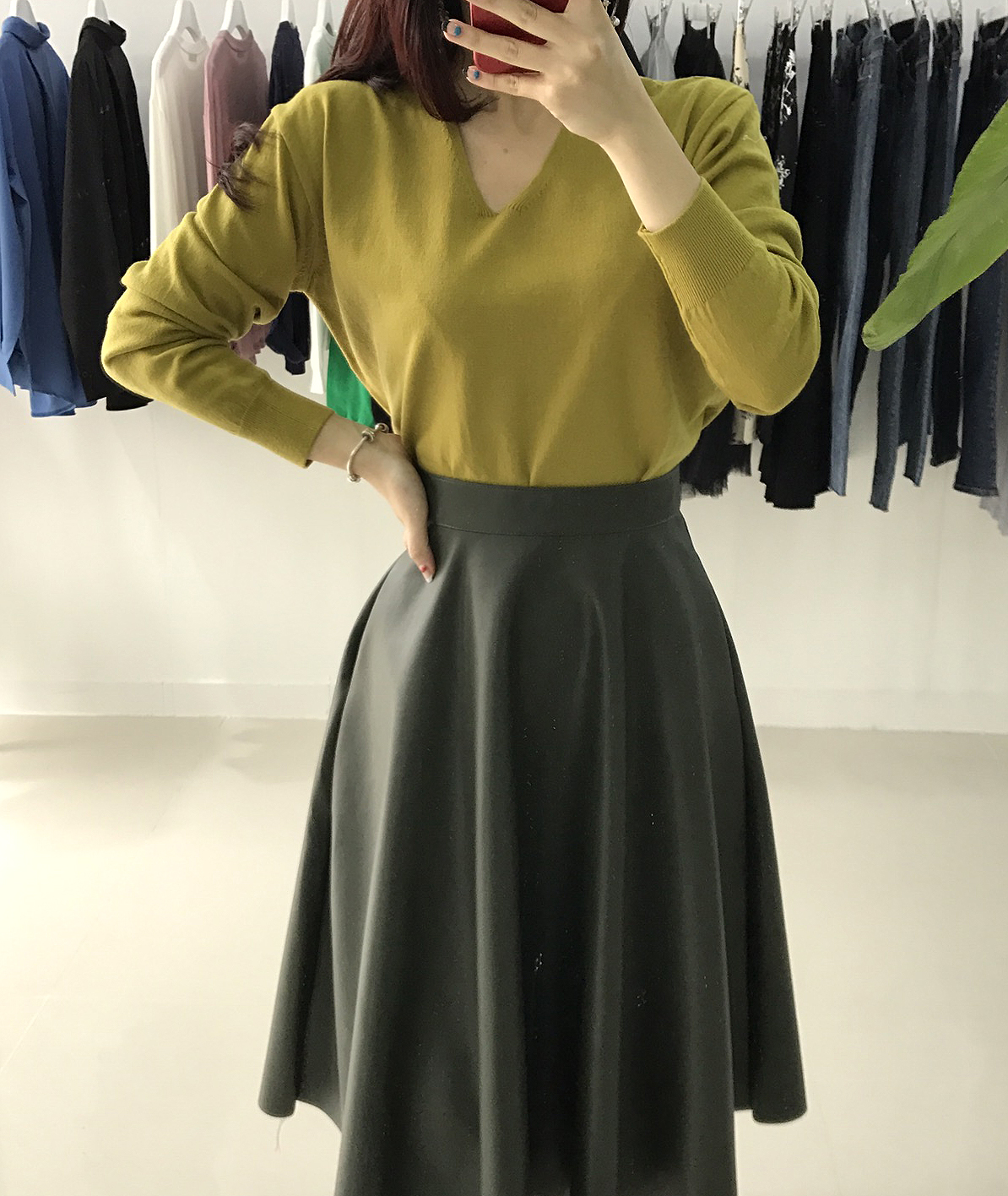 Love a line Midi Long Autumn skirt Neat coordination Luxurious and stylish office look