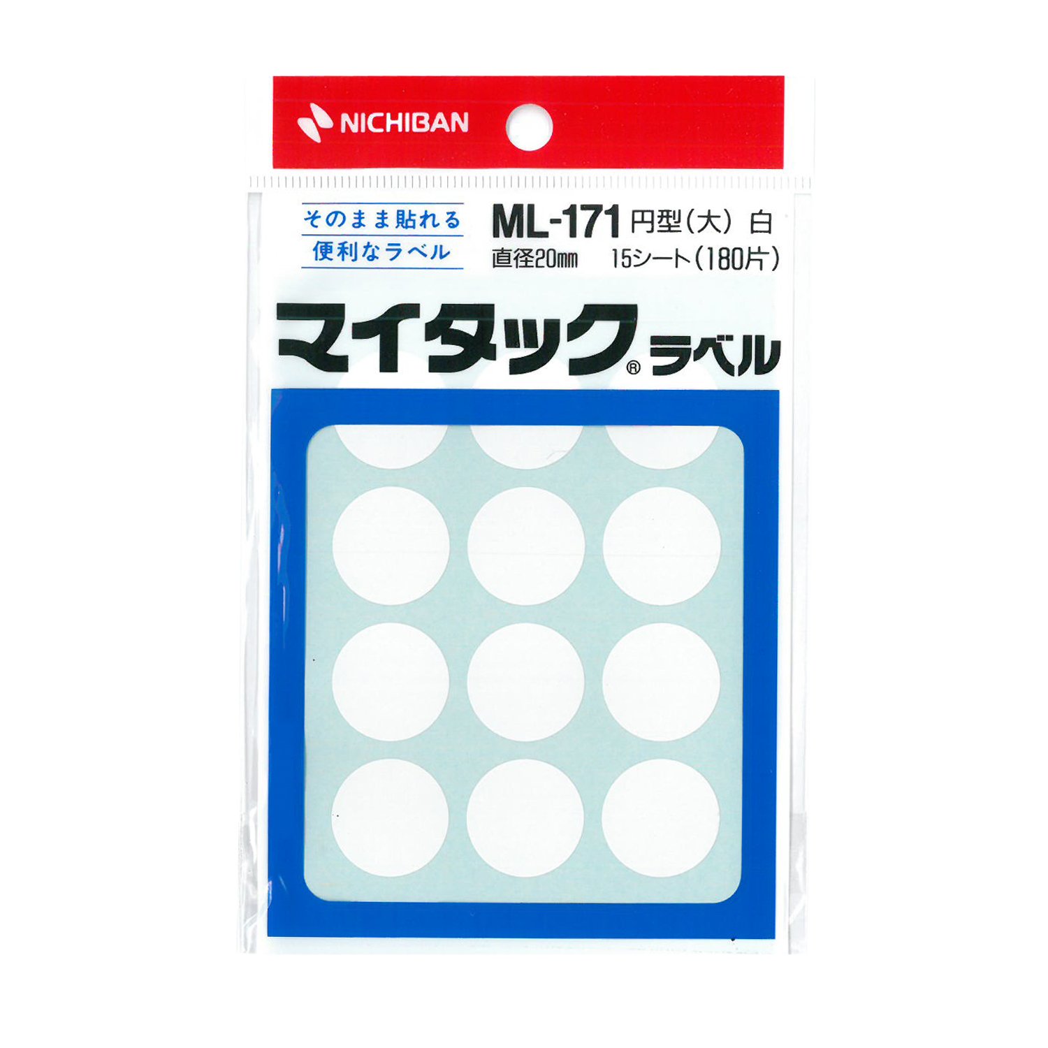 【サイズ】直径20mm 【入数】12片×15シート(180片入) 【基材】上質紙 【粘着剤】アクリル系 【ご注意】プリンタは対応してません。