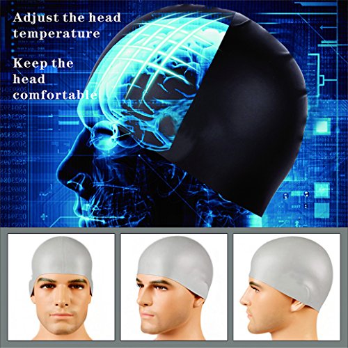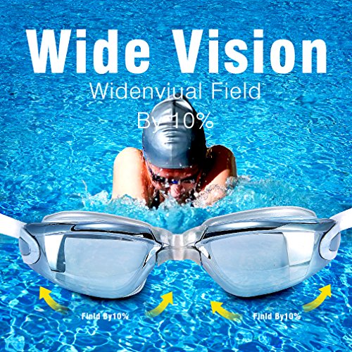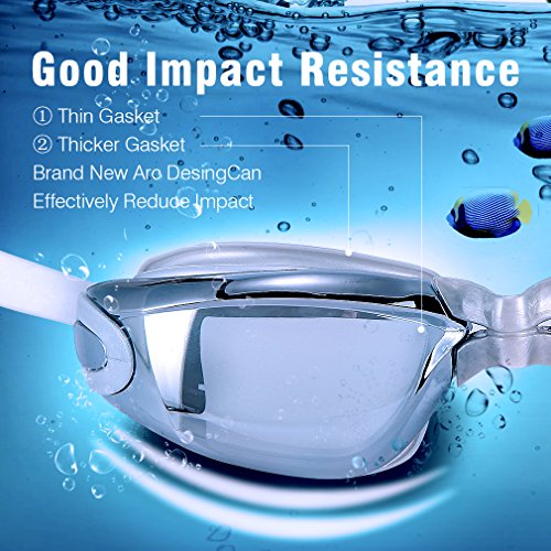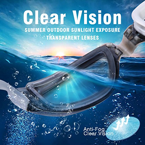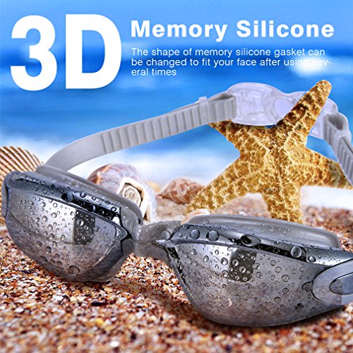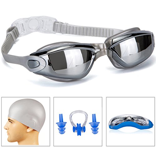 GAOGE Swim Goggles,Swimming Goggles + Swim Cap + Case + Nose Clip + Ear Plugs, Triathlon Swim Goggles Mirror Coated Lenses Anti-Fog Shatterproof UV Protection for Adult Men Women Youth Kids Child Gray