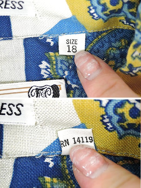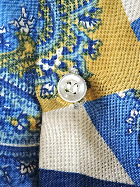 Ladies ブランド カラー青・黄 メール便不可 コンディション★★★ 素材コットン 表記サイズ18 スタッフコメントベースの白が全体的にくすんでいます。 実寸サイズ 着丈 67 cm 身幅 50 cm 肩幅 41 cm 袖丈 22 cm ※ウエスト・ヒップ以外は平置き採寸【code】#c