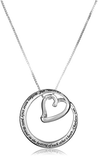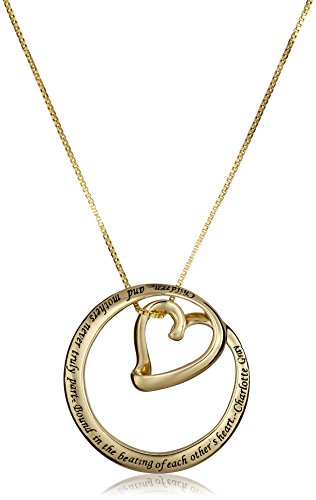 -. Binding : Jewelry -. Brand : Amazon Collection -. Color : Gold -. Department : women -. Feature : Sterling silver necklace featuring engraved circle with inner heart pendant suspended from box chain with sP.R.Ing-ring clasp / Crafted in .925 sterling silver / Imported -. Label : LA Rocks -. Manufacturer : LA Rocks -. Model : 431313G-Parent -. MPN : 431313G-Parent -. PartNumber : 431313G-Parent -. ProductGroup : Jewelry -. ProductTypeName : FINENECKLACEBRACELETANKLET -. Publisher : LA Rocks -. Studio : LA Rocks -. Title : Sterling Silver "Children and Mothers...Bound in the Beating of Each Other's Heart-Charlotte Gray" Circle Heart Pendant Necklace , 18"