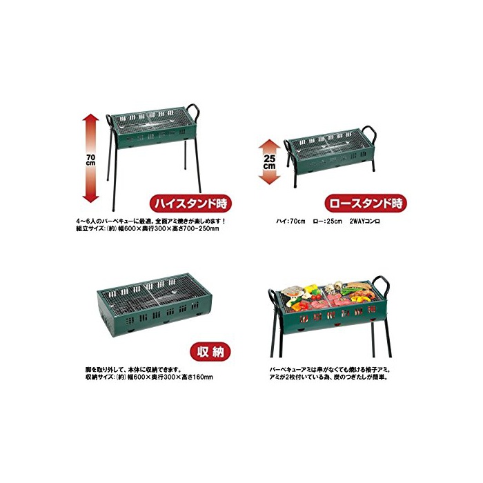 세트 내용:본체×1,바베큐망(대)×1(소)×1,눈(째)명×1,다리×4,각받는 것×2,나사×8,너트×8,캡×4