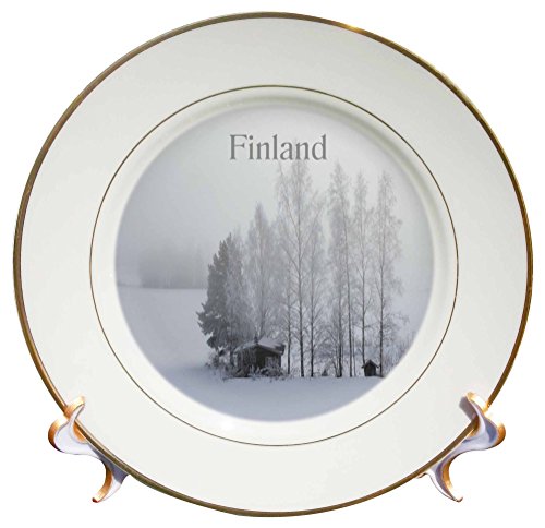 3dRose cp_200392_1 Print of Finland Country Cabin in Snow Porcelain Plate, 8"