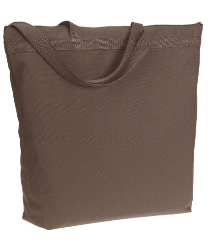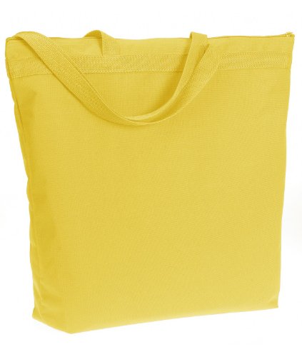 Get a great bag and feel great about doing your part to help the environment with this amazing value-priced tote made from 50 recycled materials.Features. 600-Denier polyester.. Fabric contains 50 recycled material.. Zippered top closure.. Color-matched handles and hardware.. 15.5 W x 11.5 H in. Approx. imprint area.. 8 in. Diameter max. embroidery area.. Dimension - 18.5 W x 16.5 H x 5 D in.. Color - Safety Green.. Item Weight - 0.54 lbs.Care Instructions. Use non-bleached detergent and wash with warm water Do not use machine to dry.. Leave in open ventilation to dry.