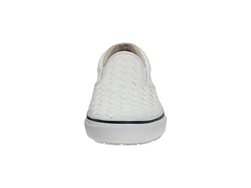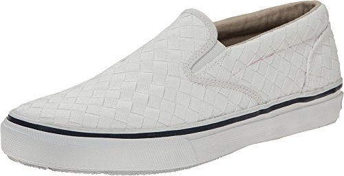 Binding : Shoes Product Description A timeless nautical style that can be worn all year long. Vulcanized construction provides a secure bond between the upper and outsole. The Striper Slip-on comes in a high quality cotton canvas or leather upper for added durability and comfort. Padded tongue and collar for added comfort around the foot. Non-marking, rubber outsole with razor cut Wave-SipingTM for the ultimate in wet/dry traction. 0