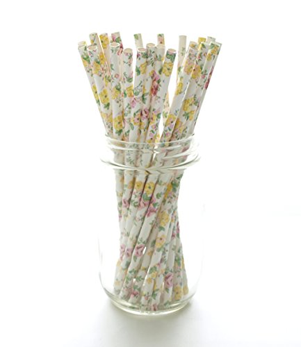 -. Title : White Wedding Straws (25 Pack) - Brides Yellow Flowers Formal Party Straws, Anniversary Celebration Paper Drinking Straws, Formal Elegant Straws