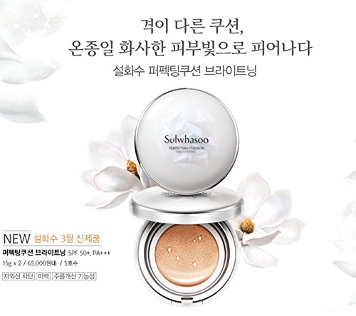 Sulwhasoo] perfecting cushion brightening no.21 medium pink wrinkle correcting/Whitening/UV Protection Cosmetics Description 1) Contains Pearlescent Complex and magnolia extracts to brighten dull skin for radiant complexion. 2) Contains licorice purifying water for long lasting hydration and transparent complexionFeature
