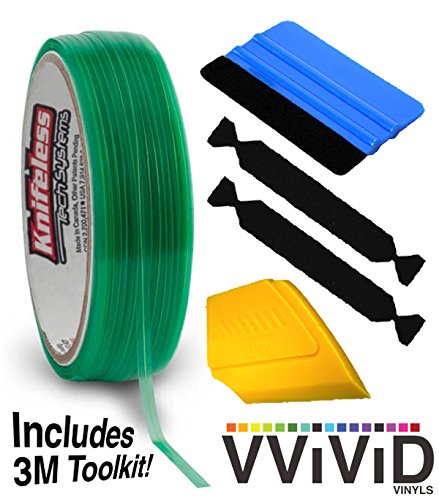 Knifeless Vinyl Wrap Cutting Tape Finishing Line 10M Plus 3M Toolkit (Blue Applicator Squeegee, Yellow Detailed Squeegee and Black Felt Edge Decals)
