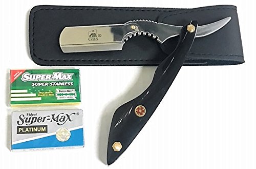 Heavy Duty Custom Barber Shavette- Faux Ivory - Black handle - Gold Accents with Leather Case & Blades!