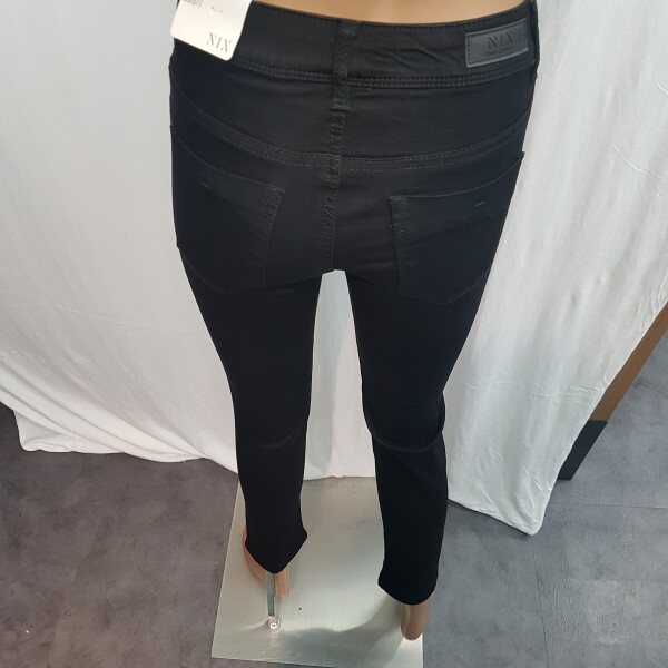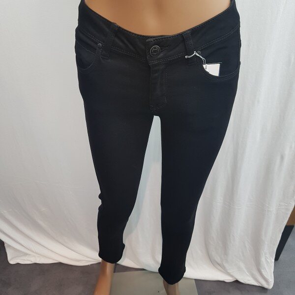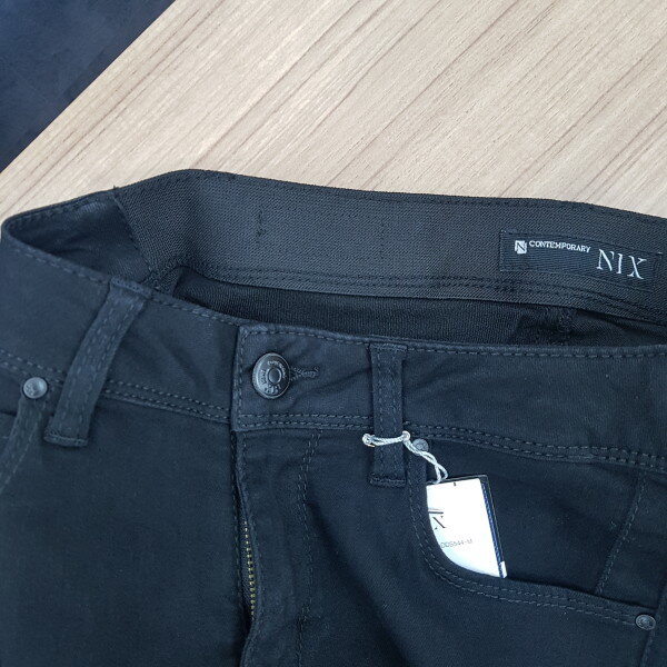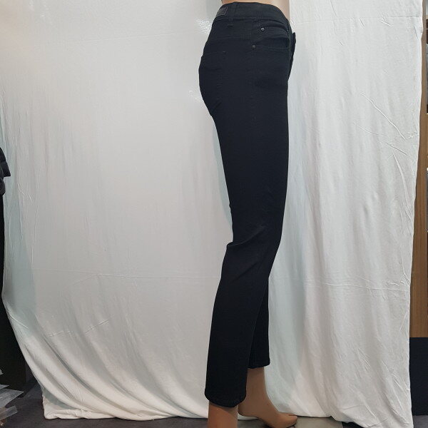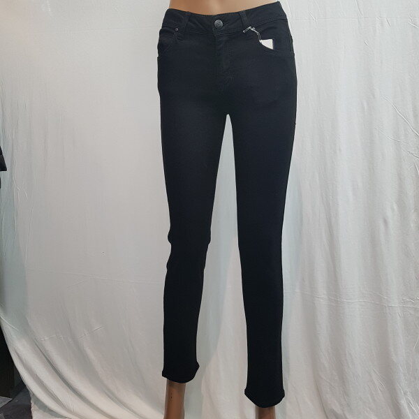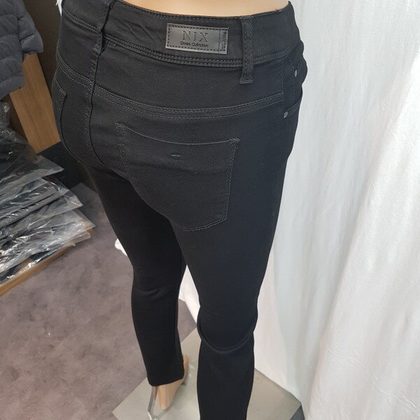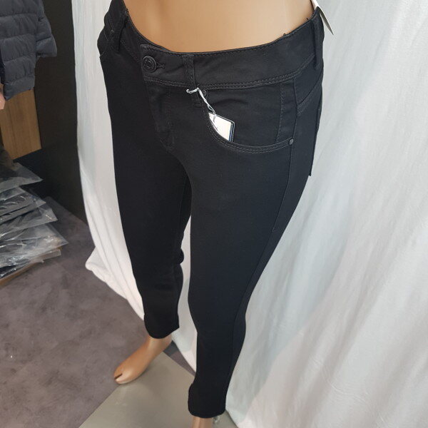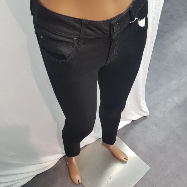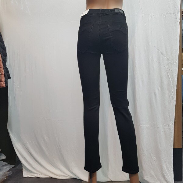 2018년 신상입니다. 전체 슬럽감이 돋보이는 올블랙의 데님, 뒤허리에 밴딩처리 되어있어 착용감이 다 좋아진 제품입니다.